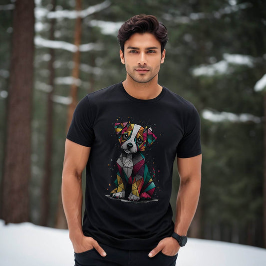 A dog with a colorful pattern on its face - Unisex Round Neck Regular Fit 100% Combed Cotton Half Sleeve T-Shirt