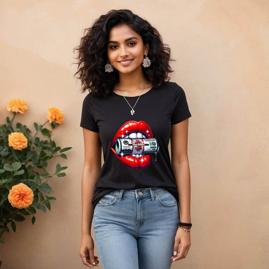 100 Dollar Bill Lips - Unisex Round Neck Regular Fit 100% Combed Cotton Half Sleeve T-Shirt