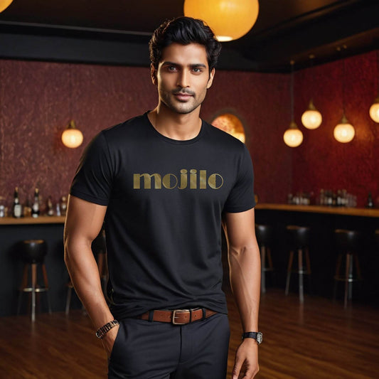 MOJILO SPANGLE UNIQE GOLD WRITING - Unisex Round Neck Regular Fit 100% Combed Cotton Half Sleeve T-Shirt