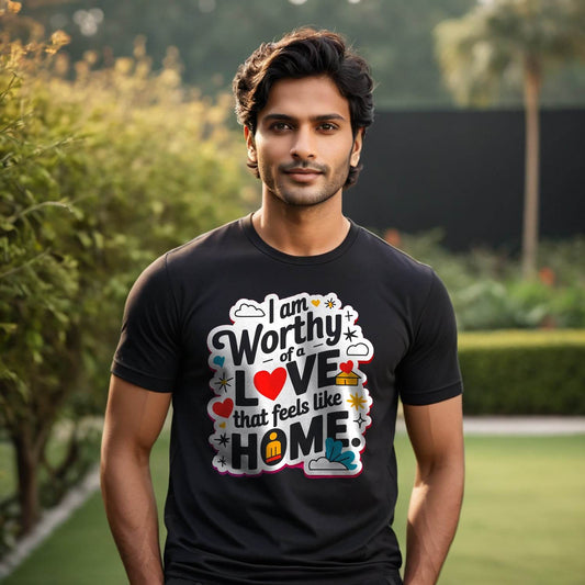 Worthy Of A Love That Feels Like HOME - Unisex Round Neck Regular Fit 100% Combed Cotton Half Sleeve T-Shirt