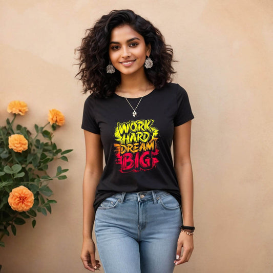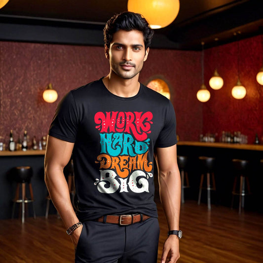 Work Hard Dream Big - Unisex Round Neck Regular Fit 100% Combed Cotton Half Sleeve T-Shirt