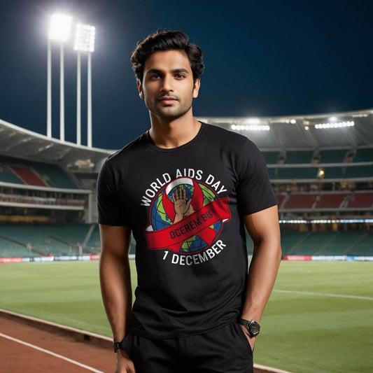 WORLD AIDS DAY 1 DECEMBER - Unisex Round Neck Regular Fit 100% Combed Cotton Half Sleeve T-Shirt