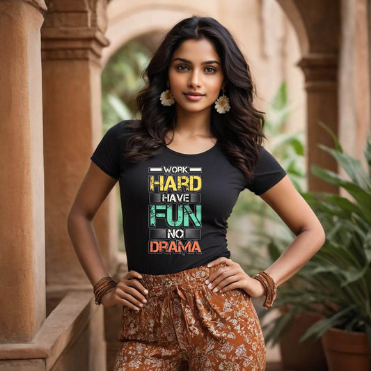 Work Hard Have Fun No Drama - Unisex Round Neck Regular Fit 100% Combed Cotton Half Sleeve T-Shirt