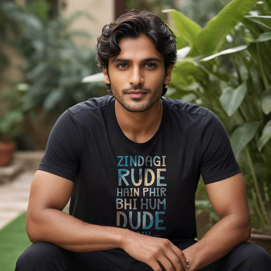 Zindagi Rude Hain Phir Bhi Hum Dude Hai - Unisex Round Neck Regular Fit 100% Combed Cotton Half Sleeve T-Shirt