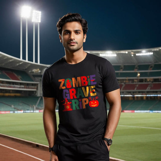 ZOMBIE GRAVE RIP - Unisex Round Neck Regular Fit 100% Combed Cotton Half Sleeve T-Shirt