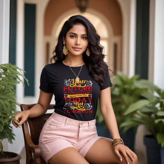 Your Future Is Created By What You Do Today Not Tomorrow - Unisex Round Neck Regular Fit 100% Combed Cotton Half Sleeve T-Shirt