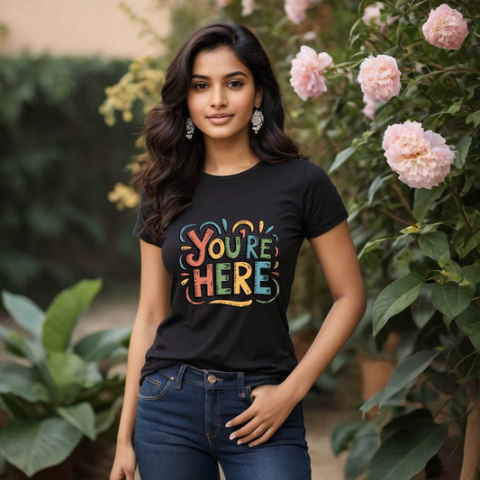 YOU'RE HERE - Unisex Round Neck Regular Fit 100% Combed Cotton Half Sleeve T-Shirt
