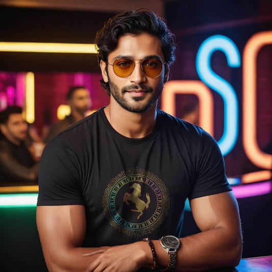 RAINBOW & GOLD SPANGLE FERRARI HOURS - Unisex Round Neck Regular Fit 100% Combed Cotton Half Sleeve T-Shirt
