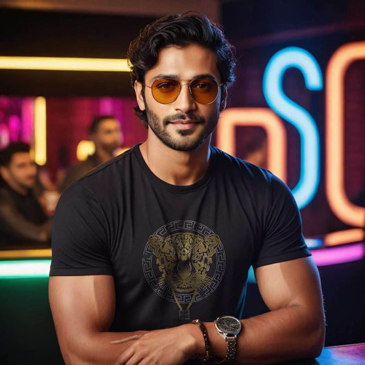 SILVER & GOLD SPANGLE TIGERLOCK - Unisex Round Neck Regular Fit 100% Combed Cotton Half Sleeve T-Shirt