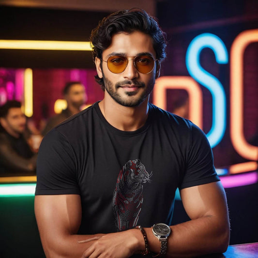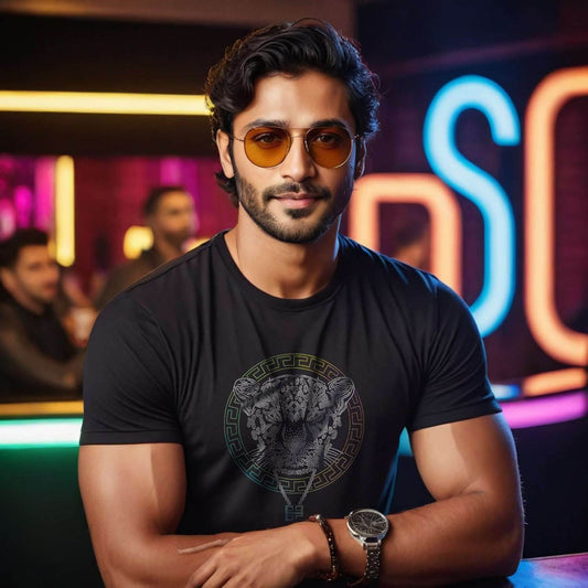 MIX COLOUR SPANGLE TIGER FACE - Unisex Round Neck Regular Fit 100% Combed Cotton Half Sleeve T-Shirt