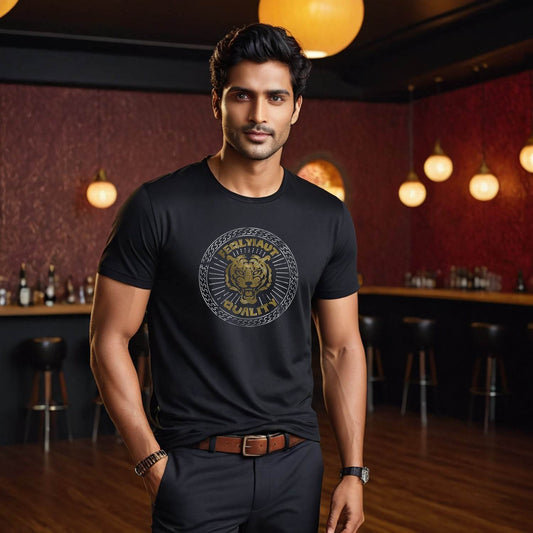 FEQLYIAUT QUALITY GOLD SILVER TIGER - Unisex Round Neck Regular Fit 100% Combed Cotton Half Sleeve T-Shirt