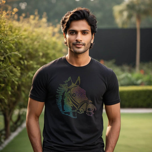 RAINBOW SPANGLE HORSE - Unisex Round Neck Regular Fit 100% Combed Cotton Half Sleeve T-Shirt