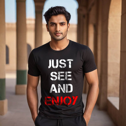 JUST SEE AND ENJOY - Unisex Round Neck Regular Fit 100% Combed Cotton Half Sleeve T-Shirt