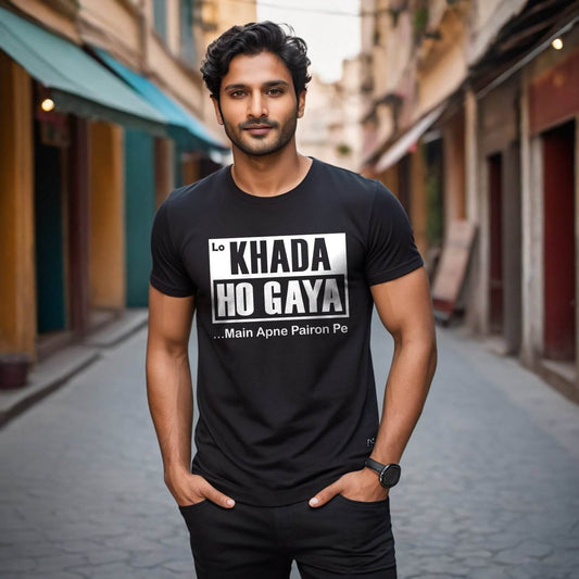 Lo KHADA HO GAYA Main Apne Pairon Pe - Unisex Round Neck Regular Fit 100% Combed Cotton Half Sleeve T-Shirt