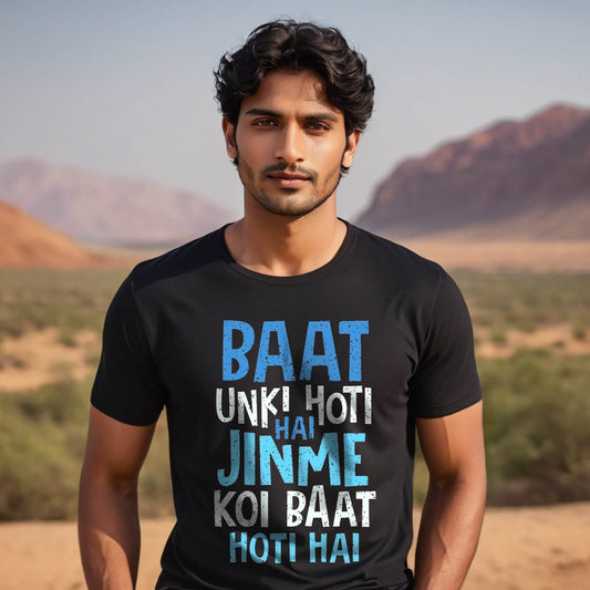 BAAT UNKI HOTI HAI JINME KOI BAAT HOTI HAI - Unisex Round Neck Regular Fit 100% Combed Cotton Half Sleeve T-Shirt