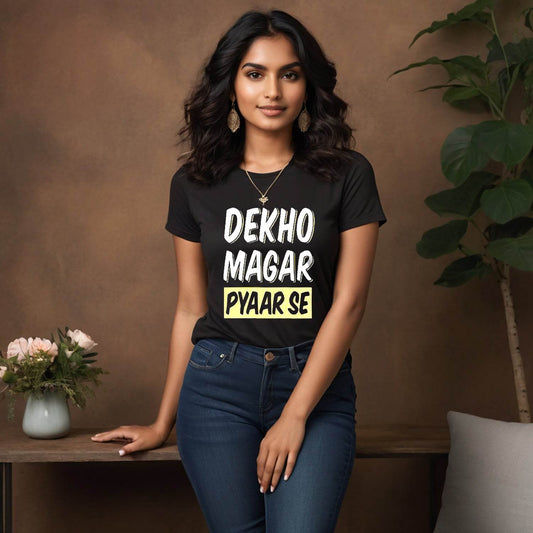 Dekho Magar Pyaar Se - Unisex Round Neck Regular Fit 100% Combed Cotton Half Sleeve T-Shirt