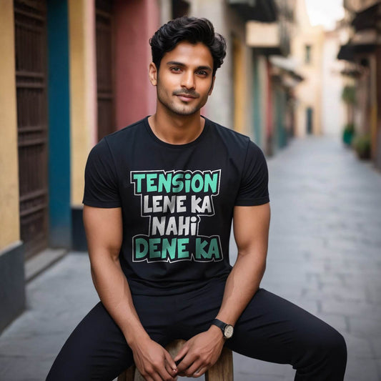 TENSION LENE KA NAHI DENE KA - Unisex Round Neck Regular Fit 100% Combed Cotton Half Sleeve T-Shirt