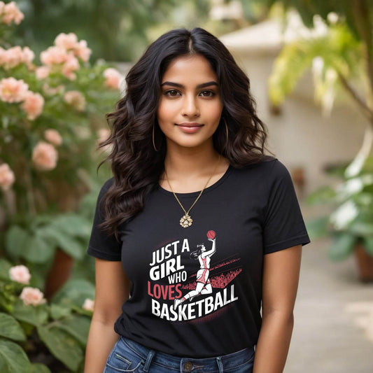 JUST A GIRL WHO LOVES BASKETBALL - Unisex Round Neck Regular Fit 100% Combed Cotton Half Sleeve T-Shirt