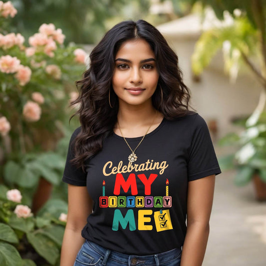 Celebrating MY BIRTHDAY DAY ME - Unisex Round Neck Regular Fit 100% Combed Cotton Half Sleeve T-Shirt