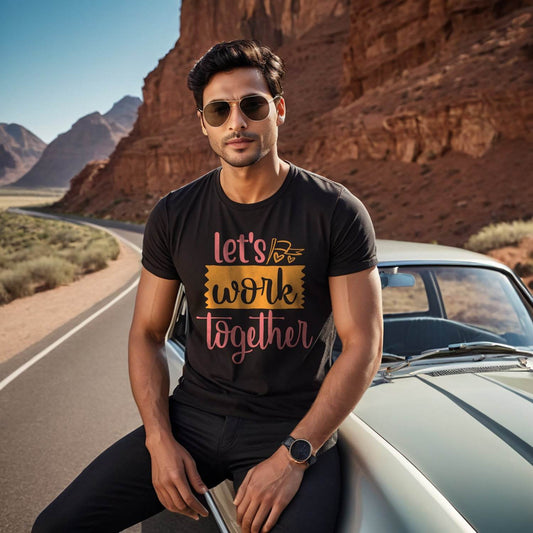Let's Work Together - Unisex Round Neck Regular Fit 100% Combed Cotton Half Sleeve T-Shirt