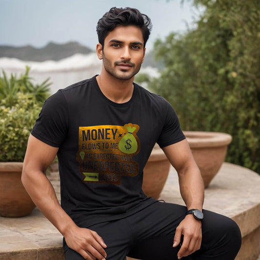 MONEY FLOWS TO ME $ IN EXPECTED AND UNEXPECTED >WAYS - Unisex Round Neck Regular Fit 100% Combed Cotton Half Sleeve T-Shirt