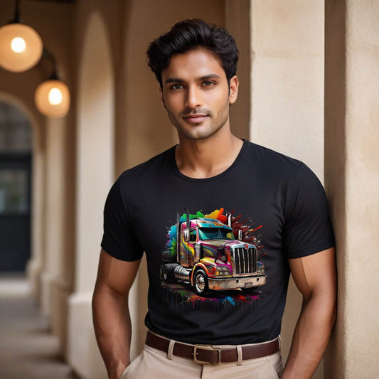 Semi Truck Paint Splatter Graphic - Unisex Round Neck Regular Fit 100% Combed Cotton Half Sleeve T-Shirt