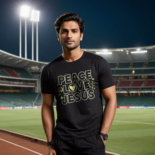 PEACE LOVE JESUS - Unisex Round Neck Regular Fit 100% Combed Cotton Half Sleeve T-Shirt