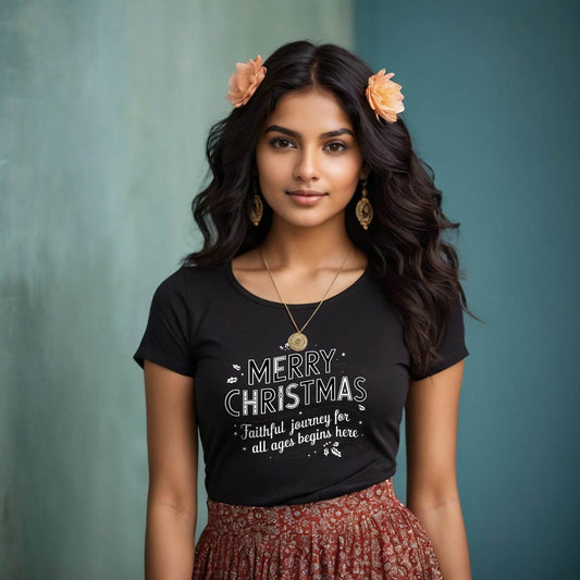 MERRY CHRISTMAS Faithful Journey For All Ages Begins Here - Unisex Round Neck Regular Fit 100% Combed Cotton Half Sleeve T-Shirt