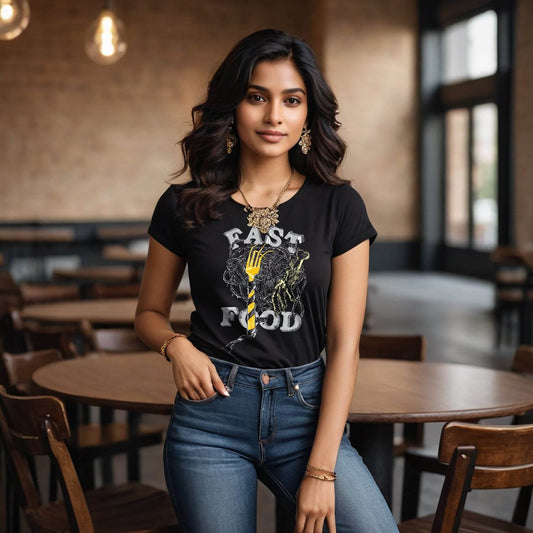 FAST FOOD - Unisex Round Neck Regular Fit 100% Combed Cotton Half Sleeve T-Shirt