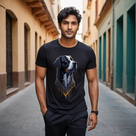 Proud Bernese Mountain Dog Head as Portrait Drawing Style - Unisex Round Neck Regular Fit 100% Combed Cotton Half Sleeve T-Shirt