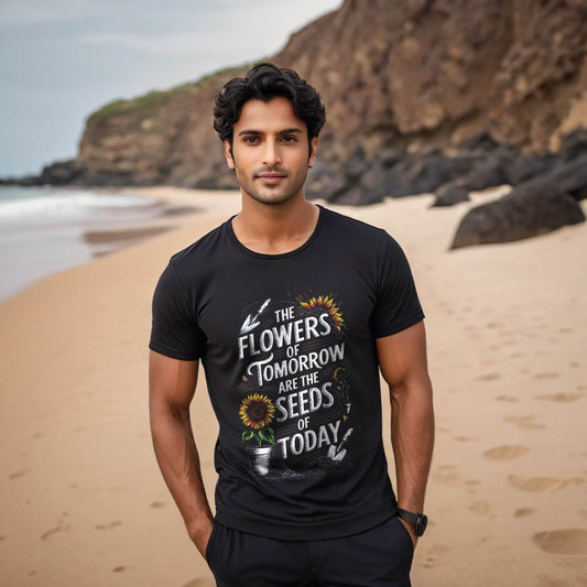 The Flower of Tomorrow Are The Seeds of Today - Unisex Round Neck Regular Fit 100% Combed Cotton Half Sleeve T-Shirt