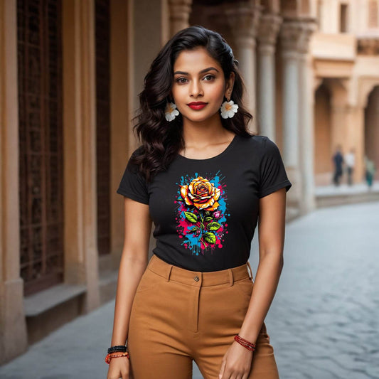 Rose Flowers Colors - Unisex Round Neck Regular Fit 100% Combed Cotton Half Sleeve T-Shirt