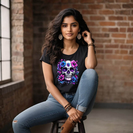 Flower Skull - Unisex Round Neck Regular Fit 100% Combed Cotton Half Sleeve T-Shirt