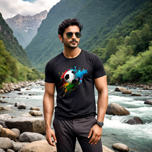 Soccer ball paint splash player team sports - Unisex Round Neck Regular Fit 100% Combed Cotton Half Sleeve T-Shirt