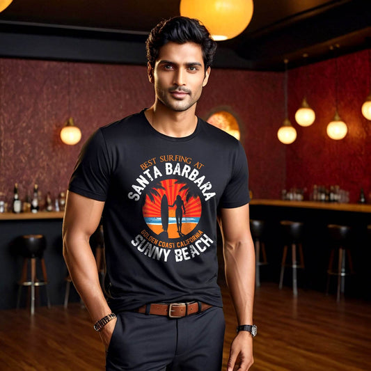 BEST SURFING AT GOLDEN COAST CALIFORNIA SUNNY BEACH - Unisex Round Neck Regular Fit 100% Combed Cotton Half Sleeve T-Shirt