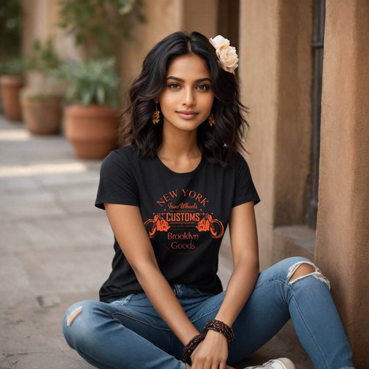 NEW YORK Iron Wheels CUSTOMS Brooklyn Goods - Unisex Round Neck Regular Fit 100% Combed Cotton Half Sleeve T-Shirt