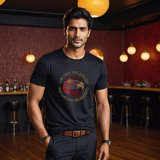 UNITED WE STAND ONE NATION UNDER GOD EAGLE - Unisex Round Neck Regular Fit 100% Combed Cotton Half Sleeve T-Shirt