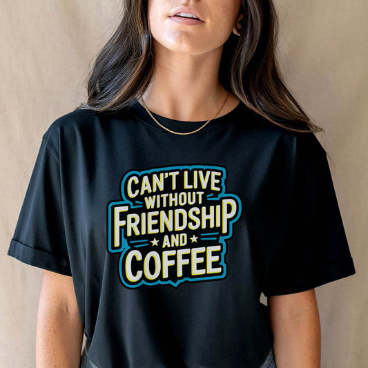 Can't Live Without Friendship And Coffee - Unisex Round Neck Regular Fit 100% Combed Cotton Half Sleeve T-Shirt