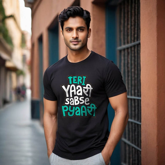 Teri Yaari Sabse Pyaari - Unisex Round Neck Regular Fit 100% Combed Cotton Half Sleeve T-Shirt