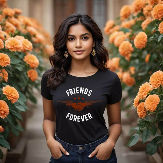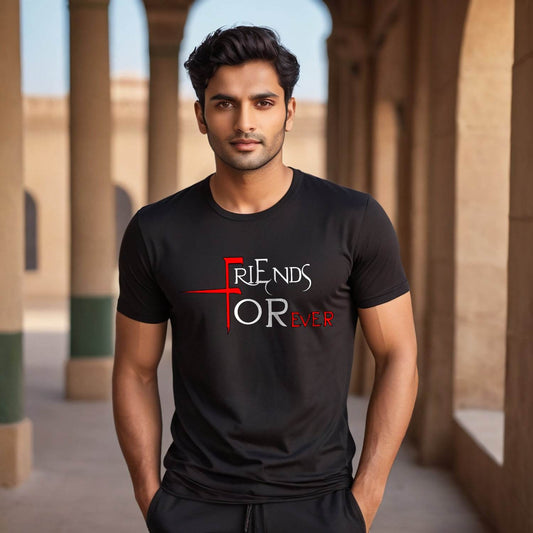 Friends Forever - Unisex Round Neck Regular Fit 100% Combed Cotton Half Sleeve T-Shirt