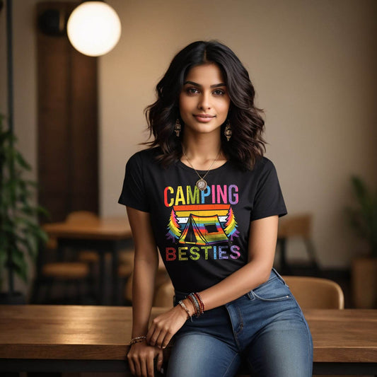 CAMPING BESTIES - Unisex Round Neck Regular Fit 100% Combed Cotton Half Sleeve T-Shirt