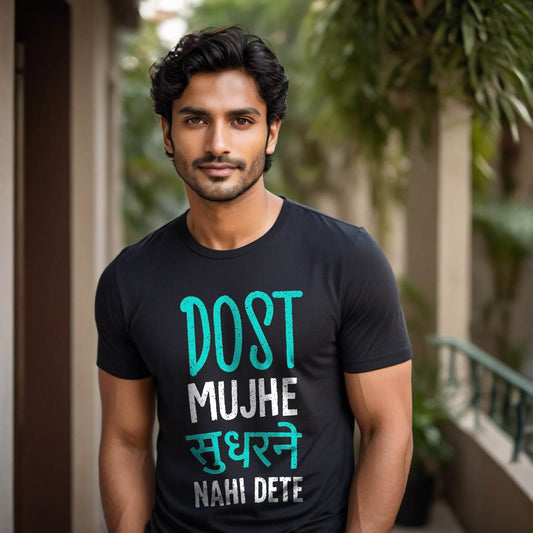 Dost Mujhe Sudharne Nahi Dete - Unisex Round Neck Regular Fit 100% Combed Cotton Half Sleeve T-Shirt
