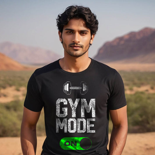 Gym Mode On - Unisex Round Neck Regular Fit 100% Combed Cotton Half Sleeve T-Shirt