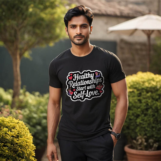 Healthy Relationships Start With Self-Love - Unisex Round Neck Regular Fit 100% Combed Cotton Half Sleeve T-Shirt