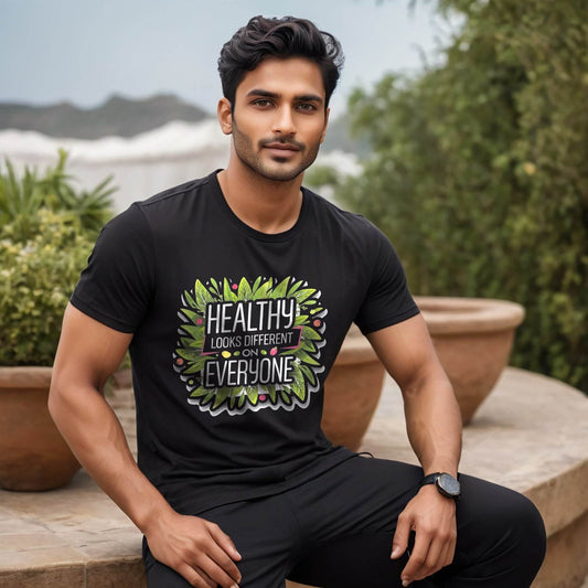 HEALTHY LOOKS DIFFERENT ON EVERYONE - Unisex Round Neck Regular Fit 100% Combed Cotton Half Sleeve T-Shirt