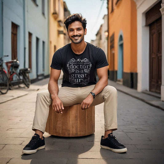 Behind every good doctor is a great nurse - Unisex Round Neck Regular Fit 100% Combed Cotton Half Sleeve T-Shirt