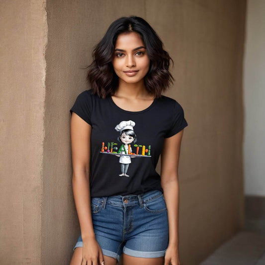 Menu Cute Cook Character - Unisex Round Neck Regular Fit 100% Combed Cotton Half Sleeve T-Shirt