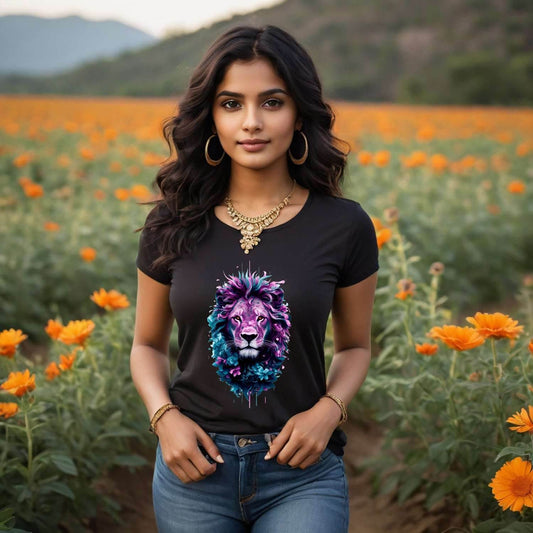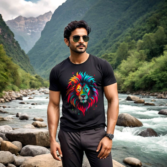 A Colorful lion - Unisex Round Neck Regular Fit 100% Combed Cotton Half Sleeve T-Shirt