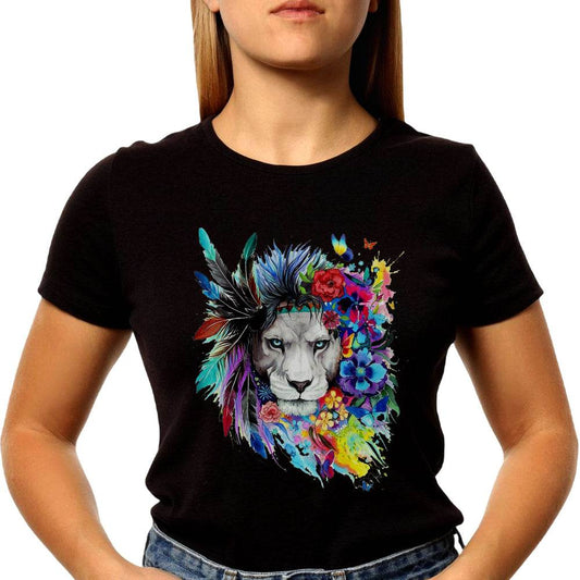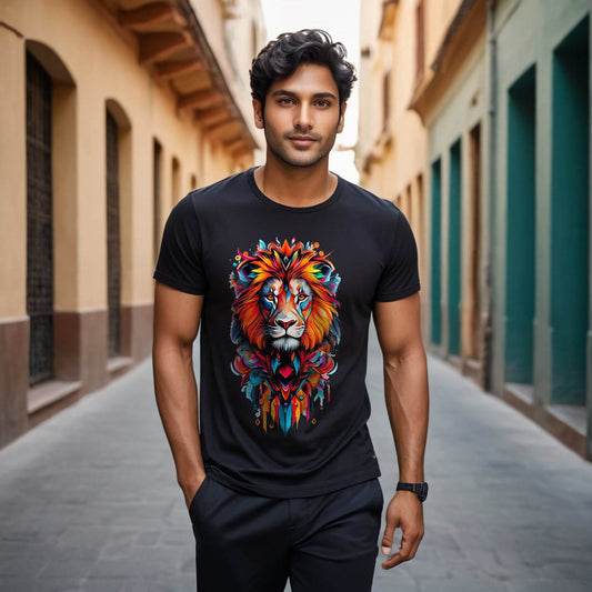 Colorful Lion Head Graphic - Unisex Round Neck Regular Fit 100% Combed Cotton Half Sleeve T-Shirt