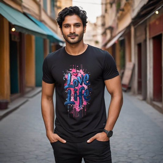Love Life Print - Unisex Round Neck Regular Fit 100% Combed Cotton Half Sleeve T-Shirt